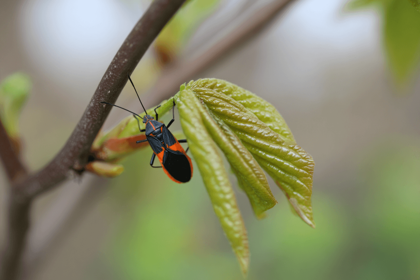 Boxelder bugs are black with bright red or orange lines on their backs. They gather in large groups on sunny walls, doors, and windows in the fall, then try to slip inside through tiny gaps to overwinter. Inside, they show up around window sills, light fixtures, and warm upper levels.